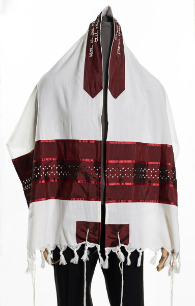 The Bordeaux Star of David Tallit is made of 100% Wool.